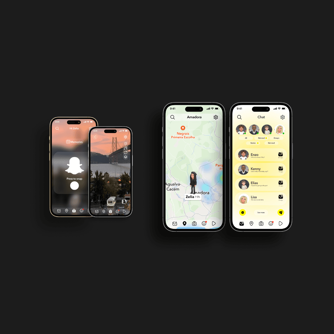 Snapchat shaped how we share visually, but its launch-into-camera design no longer fits today’s privacy-conscious world. Users often feel exposed, and accidental oversharing is a real risk.My redesign introduces a Home hub as the entry point, putting control back in users’ hands while keeping the camera just one tap away. I modernized navigation with a bottom nav bar, preserved swipe gestures for power users, and refreshed the visual language using playful yet clean “Liquid Glass” aesthetics.The result is an experience that keeps Snapchat fun and spontaneous, but makes sharing intentional, safe, and intuitive, bringing the app in line with 2025 user expectations.